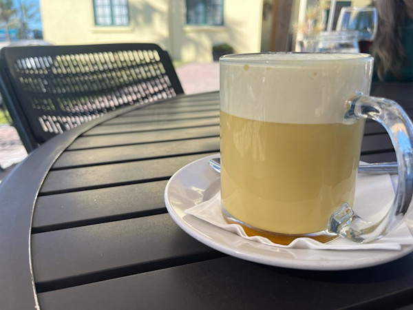 I also got a golden chai latte ($7) and my mom got a glass of merlot ($9). The latte was perfect and warmed me up while we sat outside.