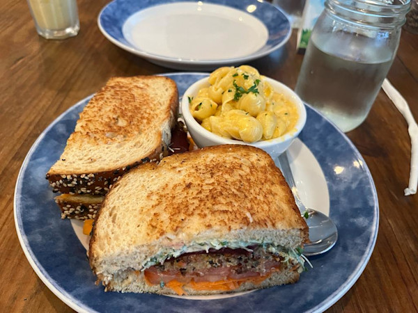 This one had grilled cheesy quinoa as the meat substitute, which I’ve never seen done before. It was amazing, I can see why it won an award! I definitely want to try cheese quinoa patties at home now. I also got a free side and chose mac n cheese again because I liked it so much the first time.
